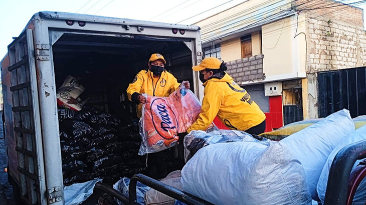 Scientology Frivillige Hjelpere fra Ecuador samarbeider med redningsarbeidere og opprydningsmannskaper for å hjelpe byen med å komme seg.