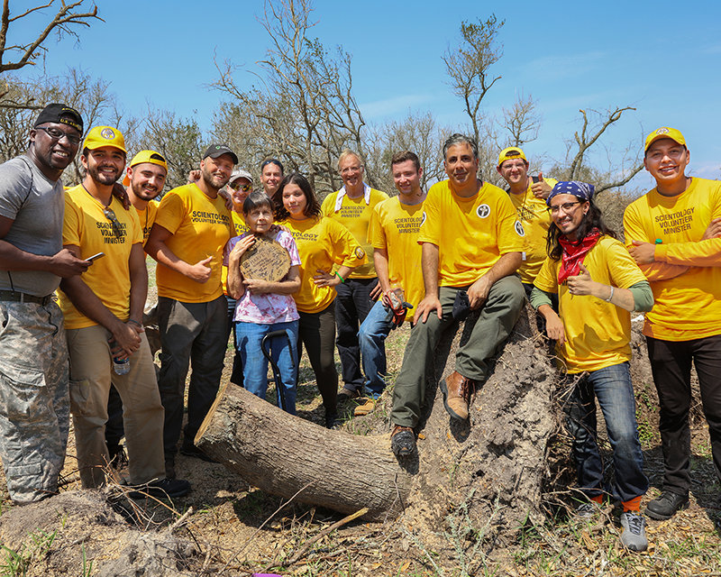 Bare noen få timer etter Harveys ankomst responderte VM-er fra hele Amerika. Scientology Kirken i Austin tjente som et sentralt koordineringspunkt hvorfra forsyninger og frivillige ble sendt på forskjellige oppdrag – fra distribusjon av sengetøy til rengjøring av hjem – og VM-er i alle rammede områder gav assister både til ofre og utrykningspersonell.